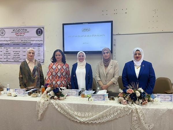 شاركت التدريسية في كلية الطب بالجامعة العراقية. أ.م.د هند عصام عبدالله عضواً في لجنة مناقشة رسالة طالبة الماجستير ( رواء حيدر بعيوي )، من قسم التقنيات الاحيائية كلية العلوم / جامعة بغداد، عن رسالتها الموسومة (Study the toxin antytoxin system in Acinetobacter baumannii isolated from inpateints in the medi city hospetalals)