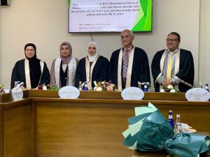 وبعد الاستماع الى ملاحظات لجنة المناقشة ودفاع الطالبة عن رسالتها بالادلة والبراهين العلمية تم قبول الرسالة شكلاً ومضموناً ومنح درجة الماجستير للطالبة آيات.