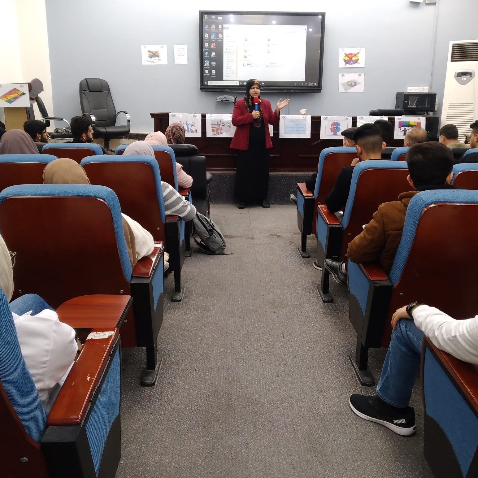 وقد القت المحاضرة أ.م.د. بشرى حسين صالح وتضمنت المحاضرة عدة محاور منـِْها تعريف الجندر وموقف الشرع من هذه الظاهرة التي يحاول البعض نشرها داخل المجتمع بالاضافة الى موقف المشرع العراقي والدستور من هذه الظاهرة.
