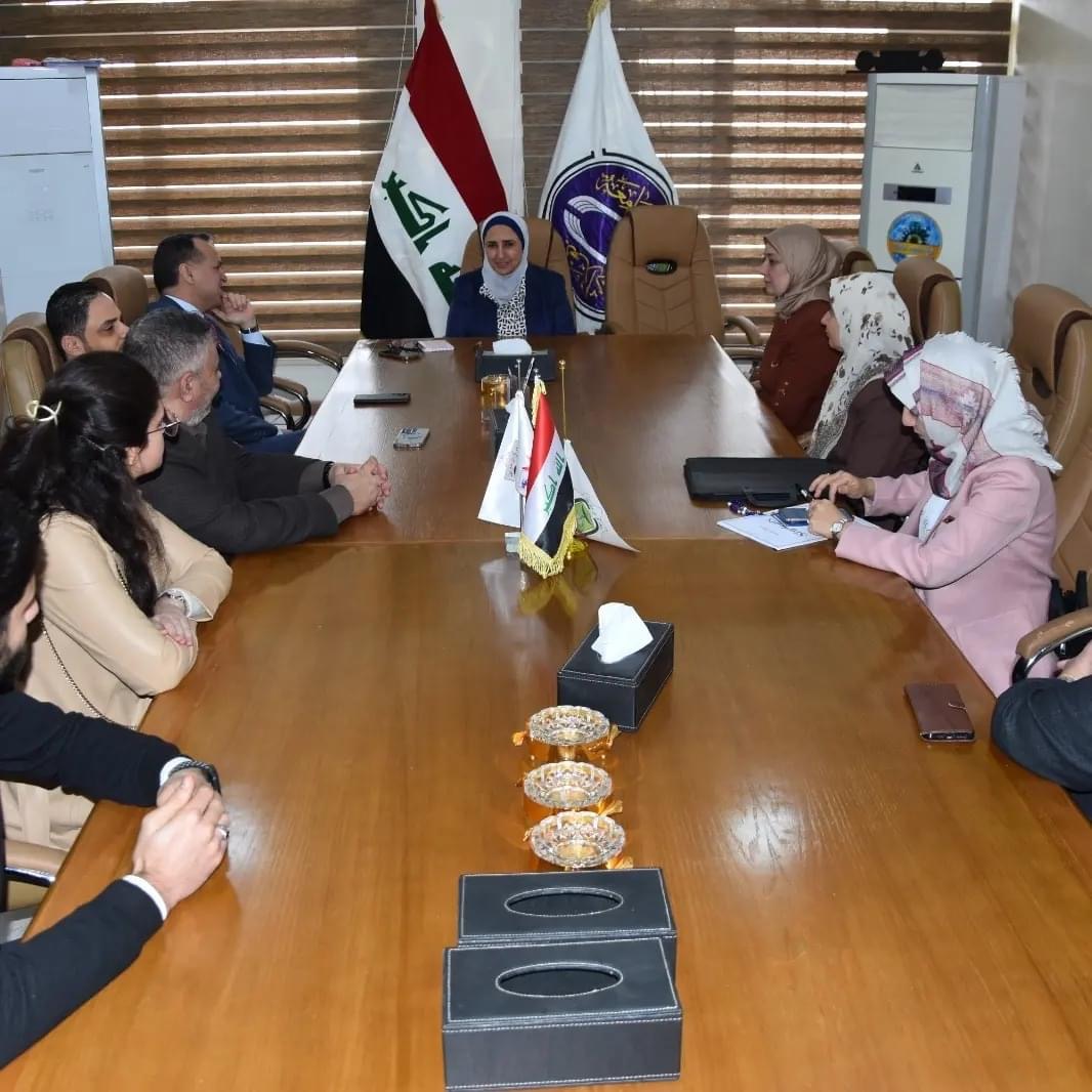 والدكتورة انفال محمد خضير رئيس لجنة الاعتمادية في الكلية والدكتورة اخلاص علي والدكتورة محاسن والدكتور محمد الجواهري وعدد من طلبة الكلية.