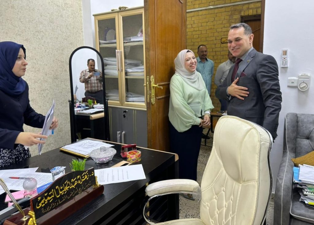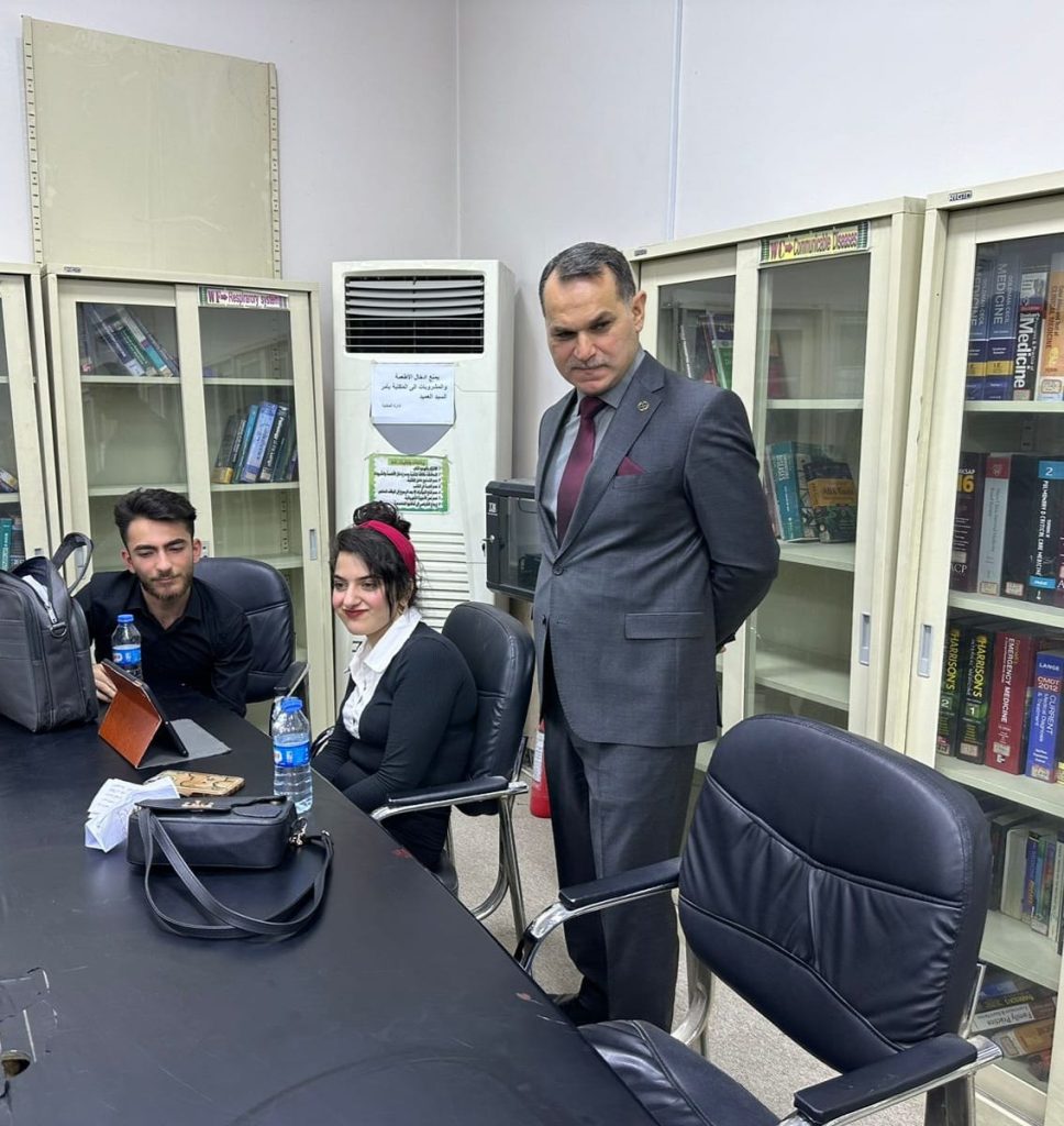 جانب من تفقد عميد كلية الطب الاستاذ الدكتور احمد نزار الدباغ مكتبة الكلية والاقسام العليمية