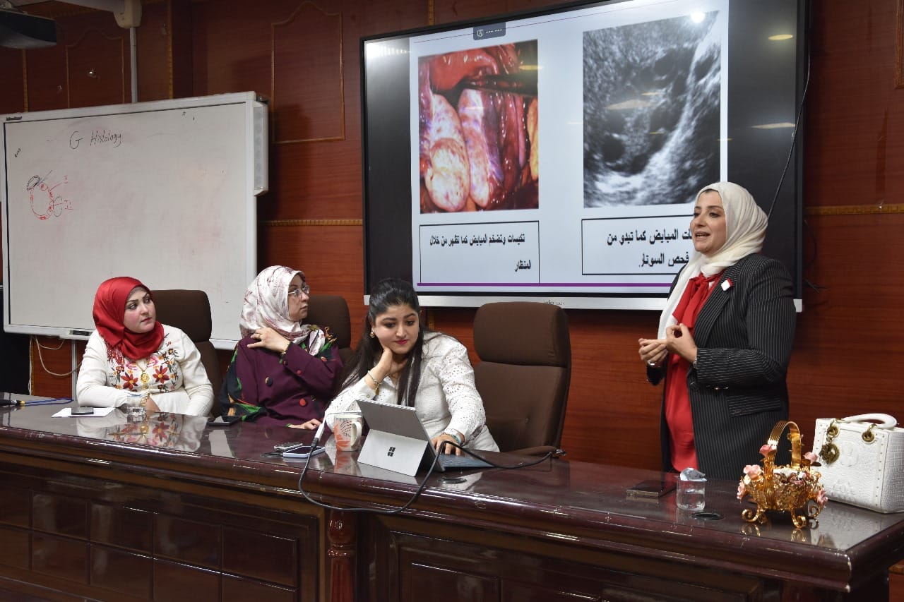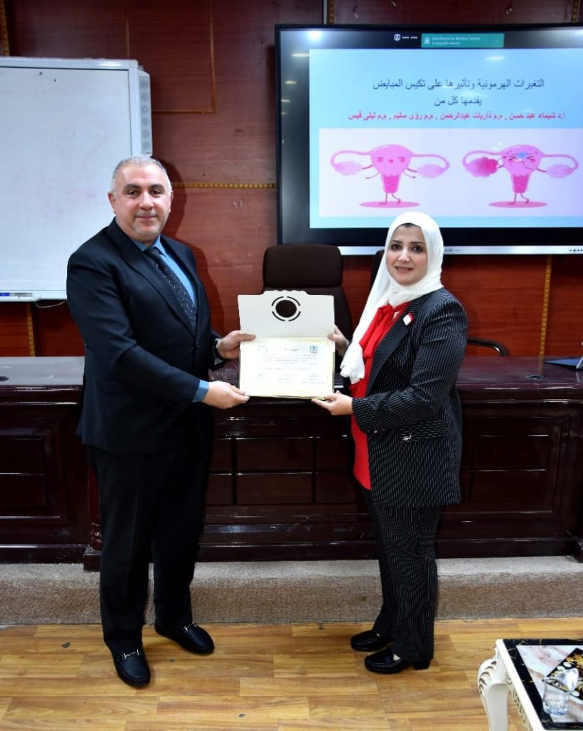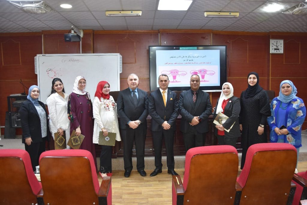 في الندوة العلمية التي اقامتها كلية طب الاسنان في الجامعة العراقية بعنوان: ” التغيرات الهرمونية وتأثيرها على تكيس المبايض”،.