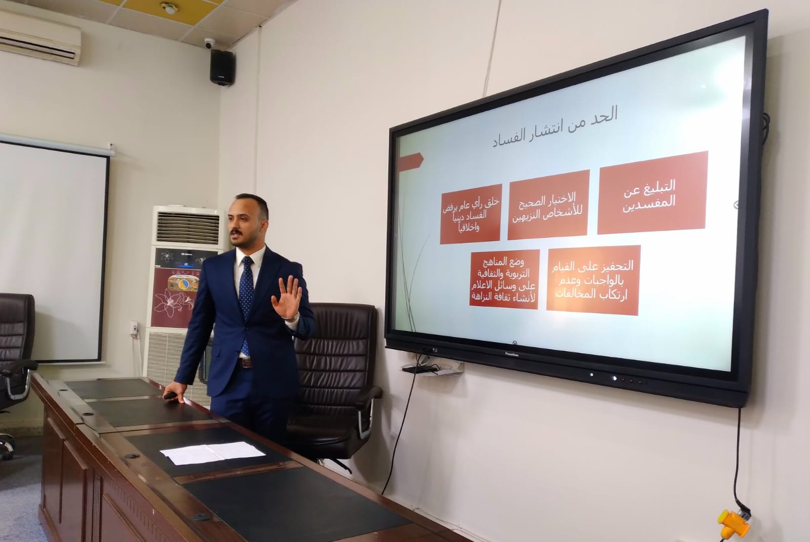 نظمت وحدة التعليم المستمر بالتعاون مع الوحدة القانونية في الكلية محاضرة علمية بعنوان ” مكافحة الفساد والحد منه ”