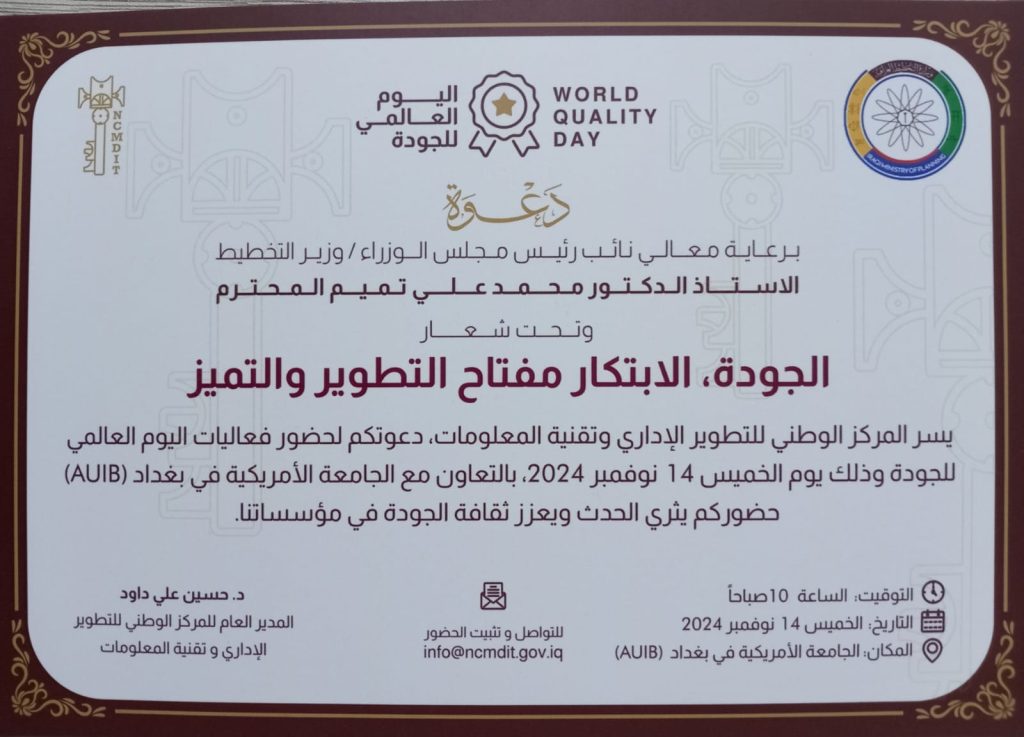 والذي نظمهُ المركز ألوطني للتطوير الاداري وتقنية المعلومات بالتعاون مع الجامعة الامريكية في بغداد
