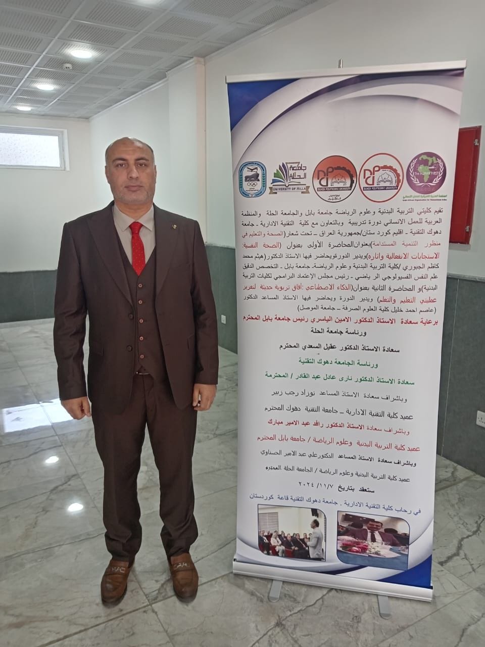وقد أقيمت الدورة على رحاب قاعة كوردستان في جامعة دهوك التقنية بالتعاون مع جامعة بابل والحلة والمنظمة العربية الافريقية للعمل الانساني .
