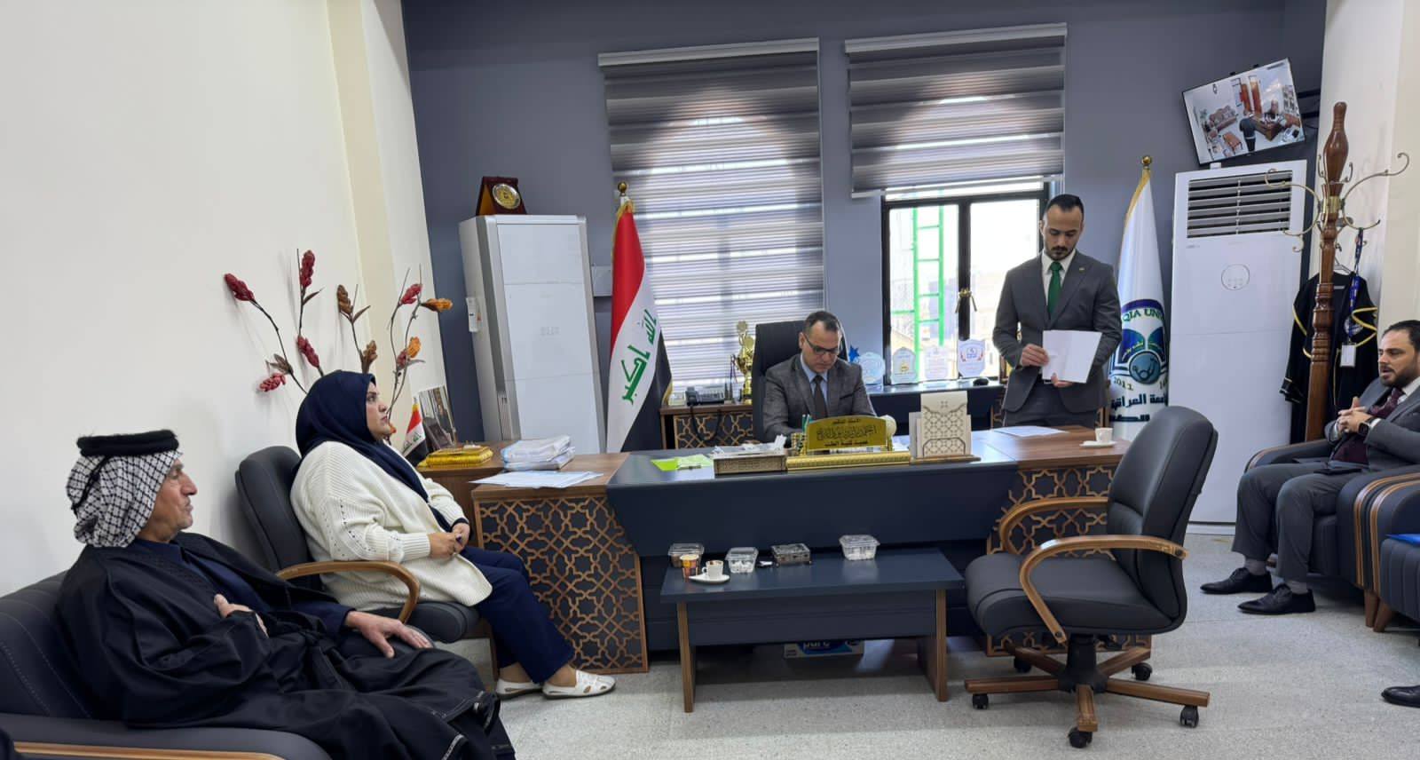 جانب من اللقاءات الأسبوعية التي يعقدها عميد كلية الطب في الجامعة العراقية، الأستاذ الدكتور أحمد نزار الدباغ، مع الموظفين والطلبة والمواطنين، بهدف متابعة طلباتهم ودراسة احتياجاتهم، ووضع الحلول المناسبة لها بما يتماشى مع الأنظمة والقوانين النافذة.