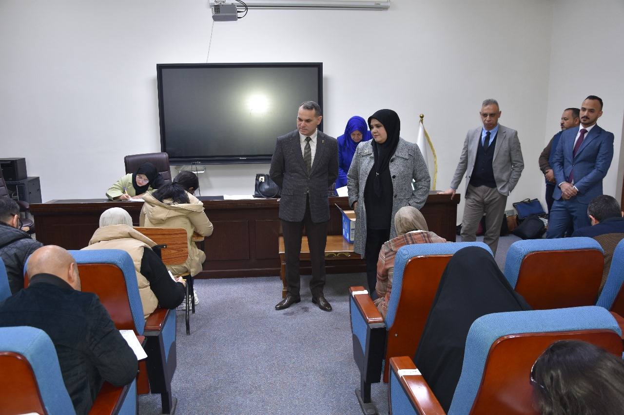 شملت الجولة زيارة عدد من القاعات الامتحانية للاطمئنان على الأجواء التنظيمية وتوفير المستلزمات الضرورية التي تضمن انسيابية الامتحانات وفق التعليمات الوزارية. واطلع السيد العميد على آراء الطلبة حول طبيعة الأسئلة ومدى ملاءمتها للمناهج الدراسية، مشيدًا بالجهود المبذولة من قبل اللجان الامتحانية وأعضاء الهيئة التدريسية في تنظيم الامتحانات وتوفير بيئة مناسبة لأداء الطلبة.