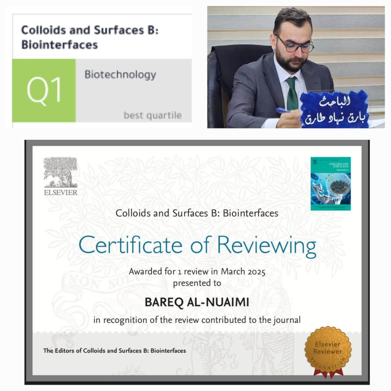 اختيار تدريسي في كلية الطب كمحكم علمي في مجلة تابعة لدار النشر ELSIEVER ومصنفة ضمن مجلات الربع الاول Q1