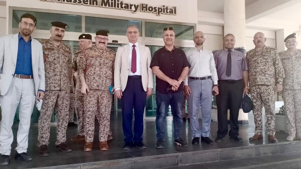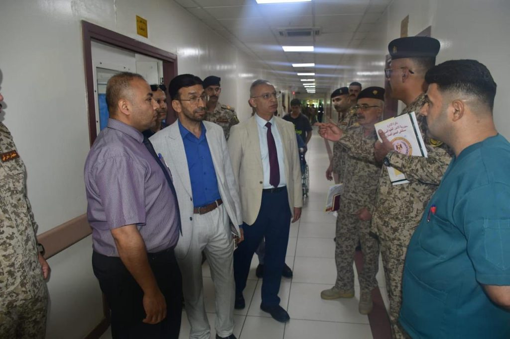 وكان في استقبال الوفد كل من اللواء الطبيب تحسين معلة، مدير الأمور الطبية في وزارة الدفاع، واللواء الطبيب عامر الجنابي، مدير مستشفى الحسين العسكري.